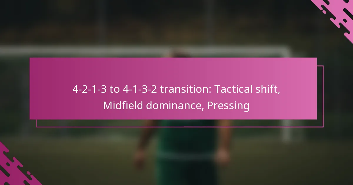 The transition from a 4-2-1-3 to a 4-1-3-2 formation represents a significant tactical shift that enhances midfield dominance and pressing effectiveness. By adopting a single defensive midfielder, teams can create a more compact midfield structure, allowing for improved possession control and strategic pressing. Successful implementation of this transition requires careful adjustments in player roles and strong communication on the field.