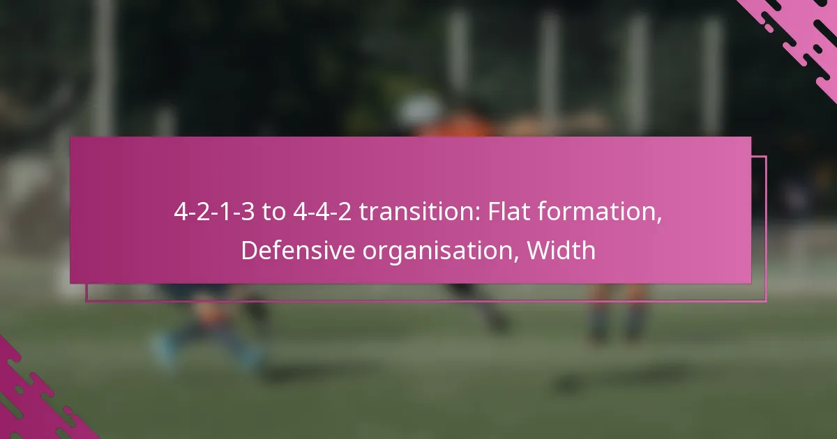The transition from a 4-2-1-3 formation to a 4-4-2 setup involves significant tactical adjustments that focus on enhancing defensive organisation and maintaining width. By shifting player roles and positioning, teams can achieve a more balanced approach, ensuring both defensive stability and offensive effectiveness. This strategic change can optimise team performance, but it necessitates precise execution to avoid potential challenges during the transition.